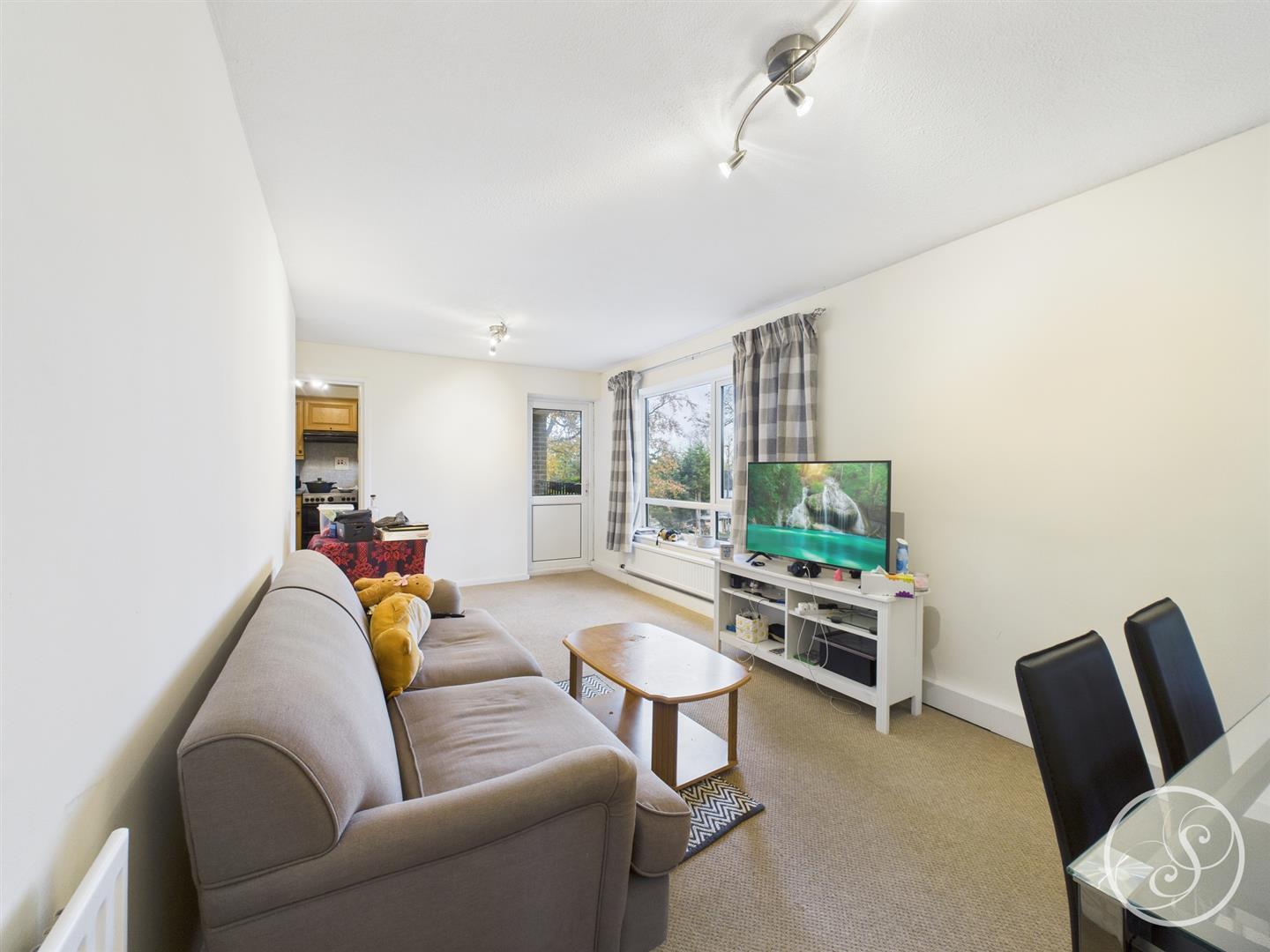 Living Room - A spacious formal living space is laid to carpet and is flooded with natural light from dual aspect windows overlooking the communal grounds. The room offers space for a seating area as well as a dedicated dining space. The lounge/diner leads to the kitchen and out to the balcony.