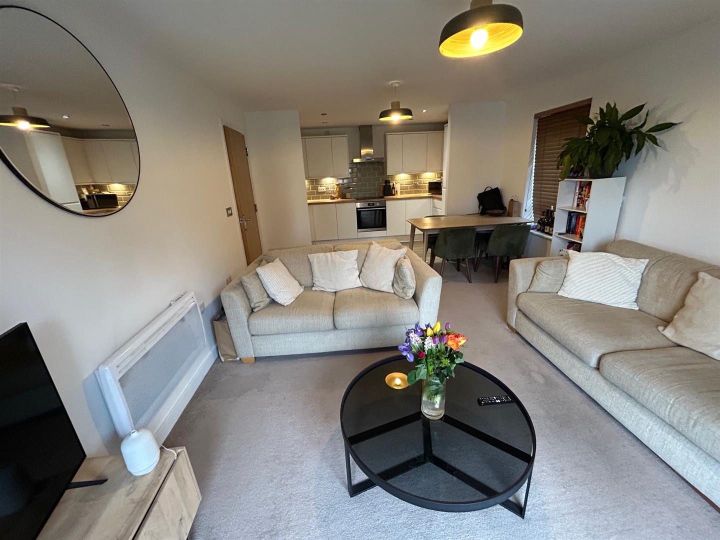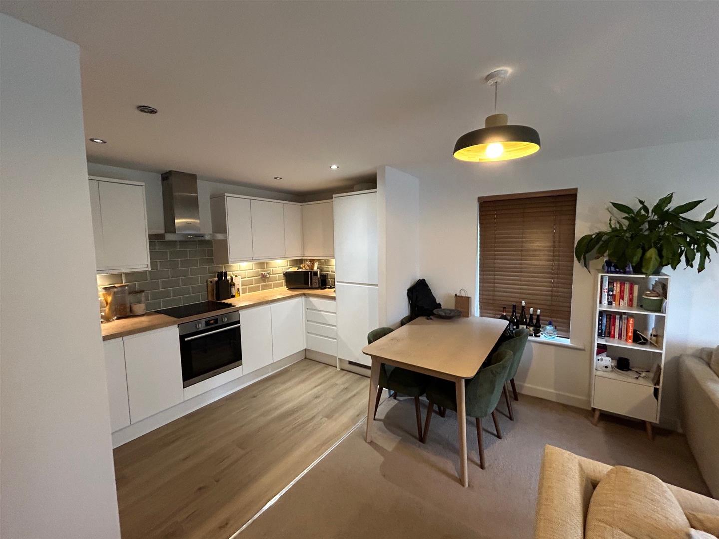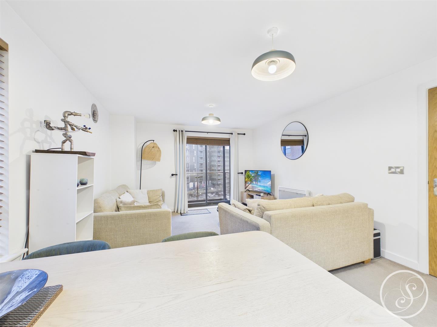 Kitchen/Living/Diner - This superb bright and airy living space offers ample space for seating as well as formal dining and boasts the luxury of a private balcony. The newly installed kitchen is a real highlight of the property with an array of integrated appliances including fridge/freezer, dishwasher, washing machine, oven and hob with extractor above, as well as plenty of storage.