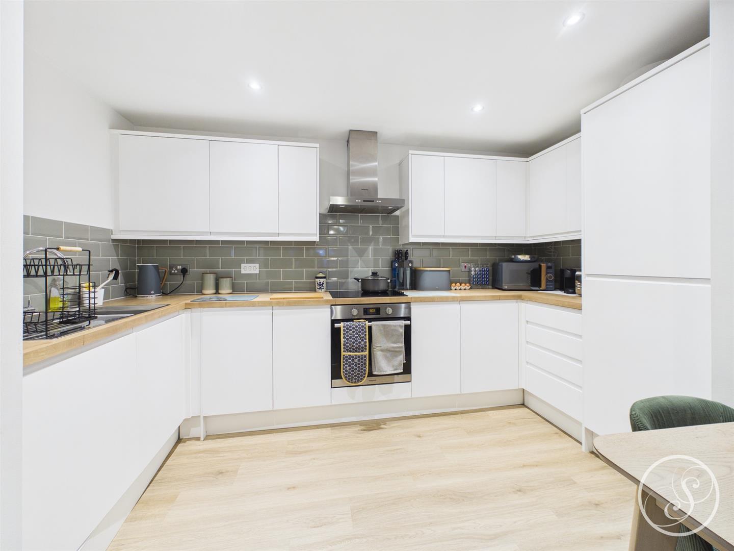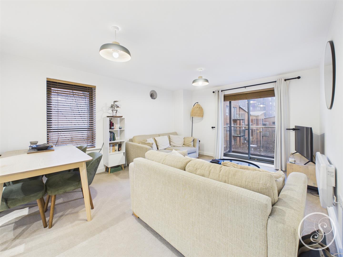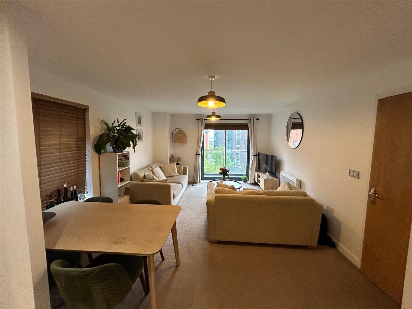 Kitchen/Living/Diner - This superb bright and airy living space offers ample space for seating as well as formal dining and boasts the luxury of a private balcony. The newly installed kitchen is a real highlight of the property with an array of integrated appliances including fridge/freezer, dishwasher, washing machine, oven and hob with extractor above, as well as plenty of storage.
