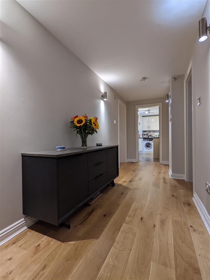 Entrance - The property benefits from its own private entrance, where you are welcomed into a large hallway that offers access throughout the property. Solid oak flooring runs through the hallway and continues throughout the lounge and bedroom.