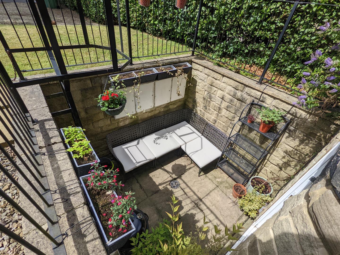 Lounge - This large reception room offers ample space for seating as well as a dining area. Fitted wooden shelves make use of the alcoves and provide great additional storage, and to the rear of the room is a door that leads out to a private courtyard area.