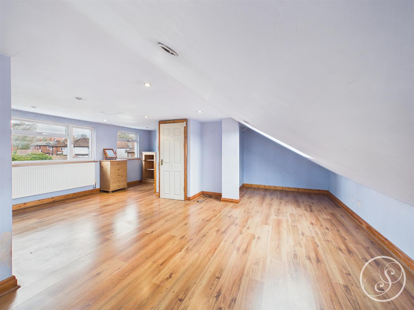 The home is further enhanced by three spacious reception rooms, which include a dedicated office space, perfect for those who work from home or require a quiet area for study. The modern house bathroom is stylishly appointed, ensuring convenience for all residents.