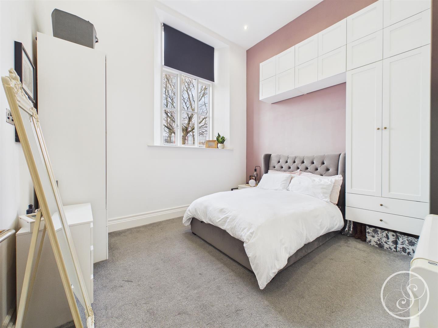 Bedroom Two - Double height second double bedroom with built in wardrobes, wall mounted electric heater and double glazed window.