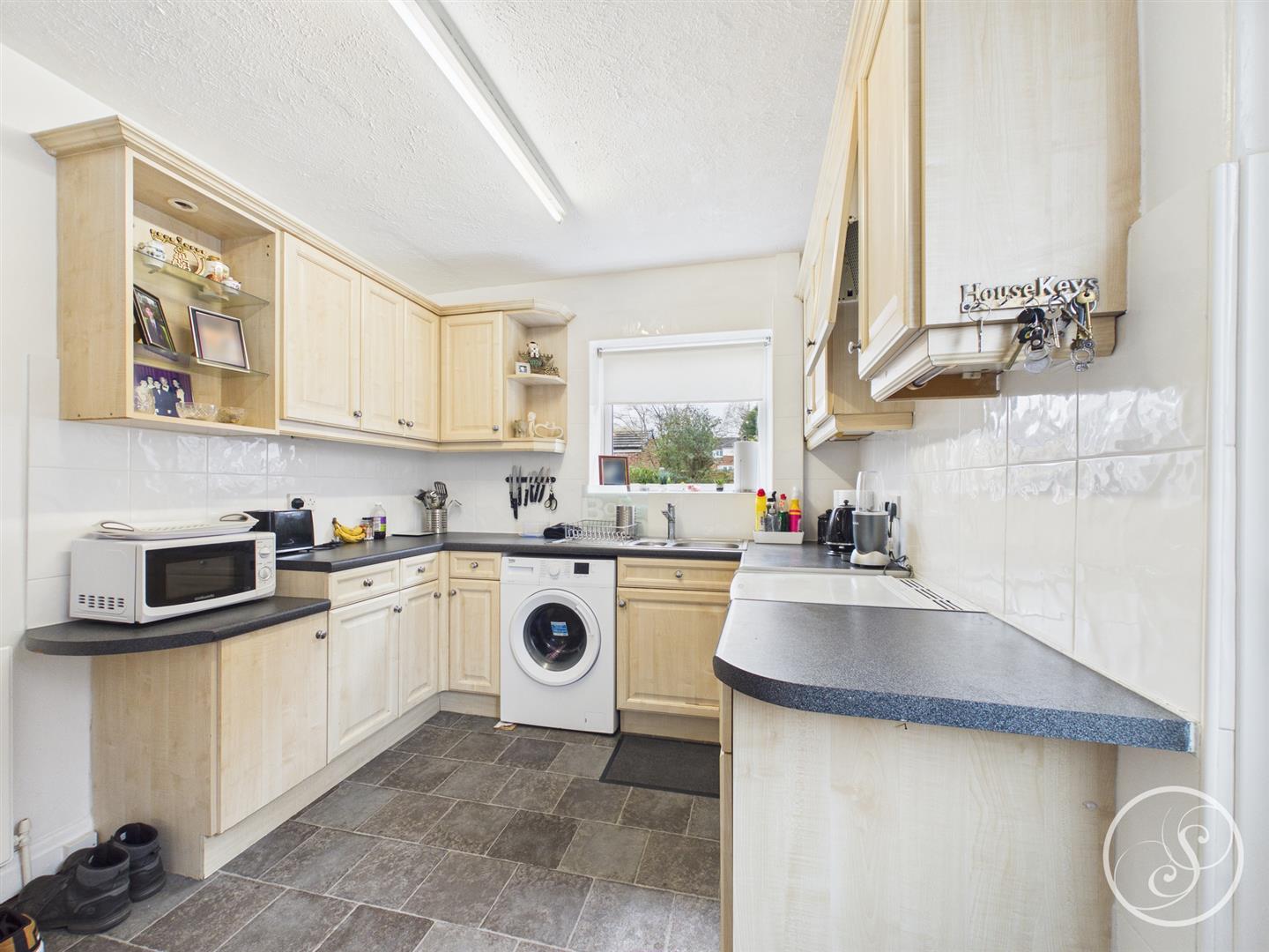 Kitchen - The kitchen has laminate flooring and is made up of wall and base units and boasts freestanding oven/hob, space for washing machine and space for fridge/freezer. Tiled backsplash runs around the kitchen complementing the units. External door provide access to the side of the property.