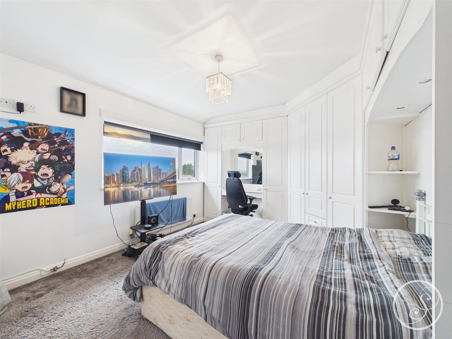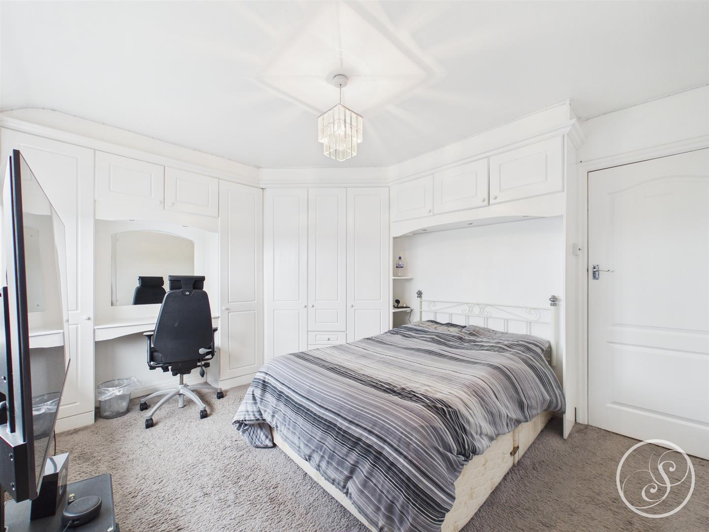 Bedroom Two - A comfortable double bedroom laid to carpet, with a large window, central heating radiator, and built-in storage cupboards.