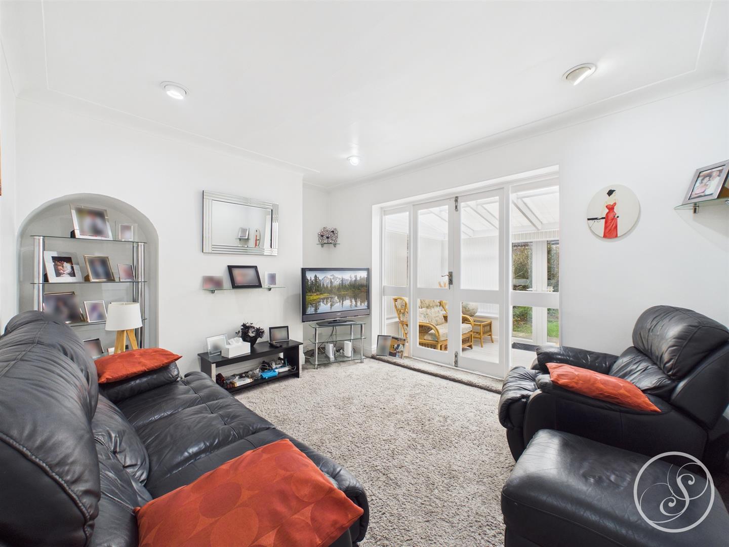 Living Room - The living room is laid to carpet and features a central heating radiator. Large glass doors lead to the sunroom making this a great space for hosting.