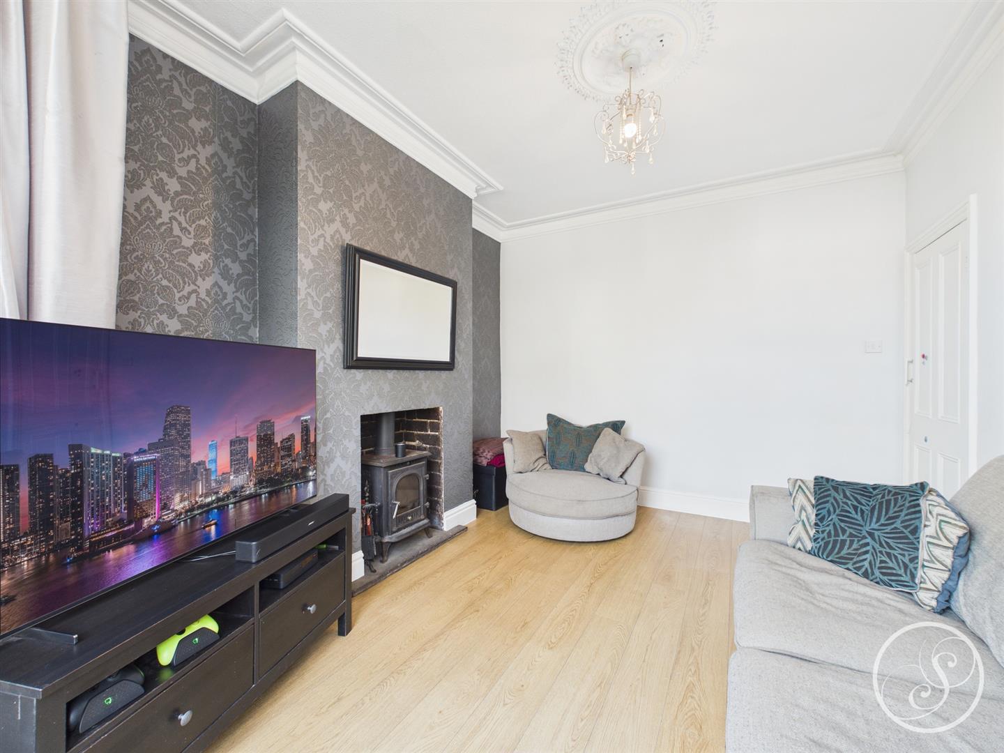 Living Room - This formal living room is flooded with natural light thanks to the large bay window to the front elevation of the property. The room offers ample space for seating and boasts a log burner.