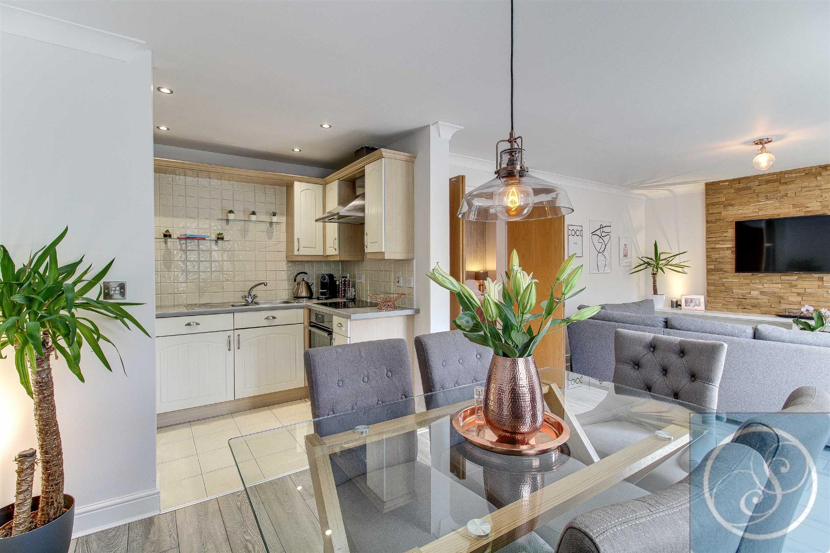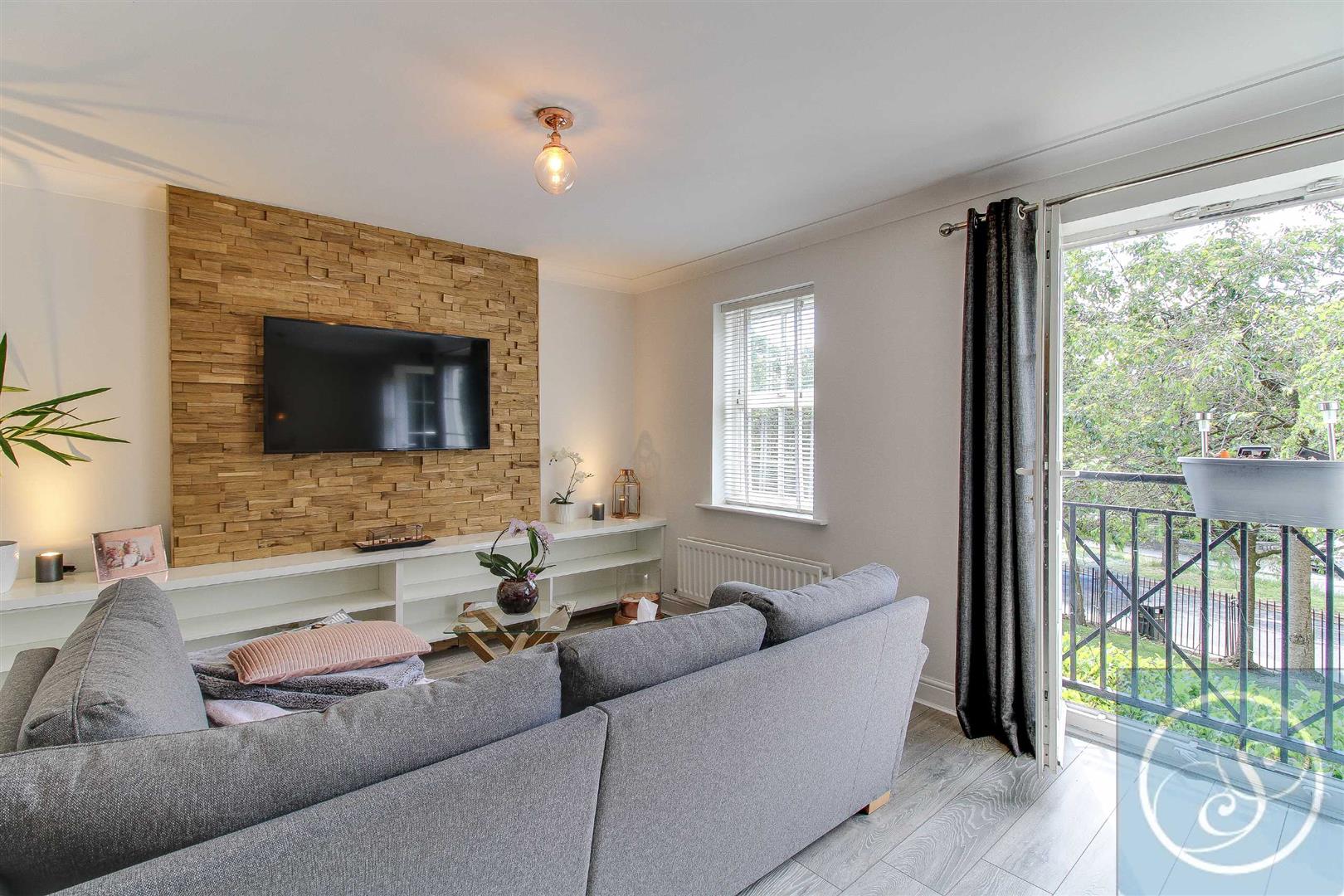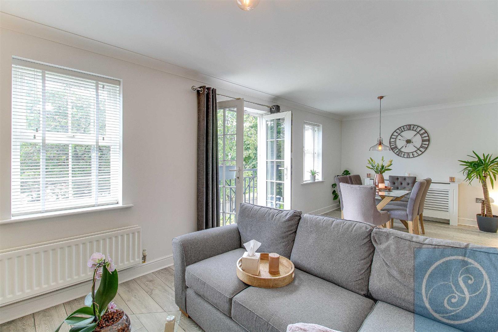 Open Plan Lounge-Diner - Fantastic reception space offering ample natural light via two double glazed windows and double glazed patio doors with Juliet balcony, wood effect laminate flooring, two radiators, feature wall and bespoke shelving with concealed wiring for wall mounted television.