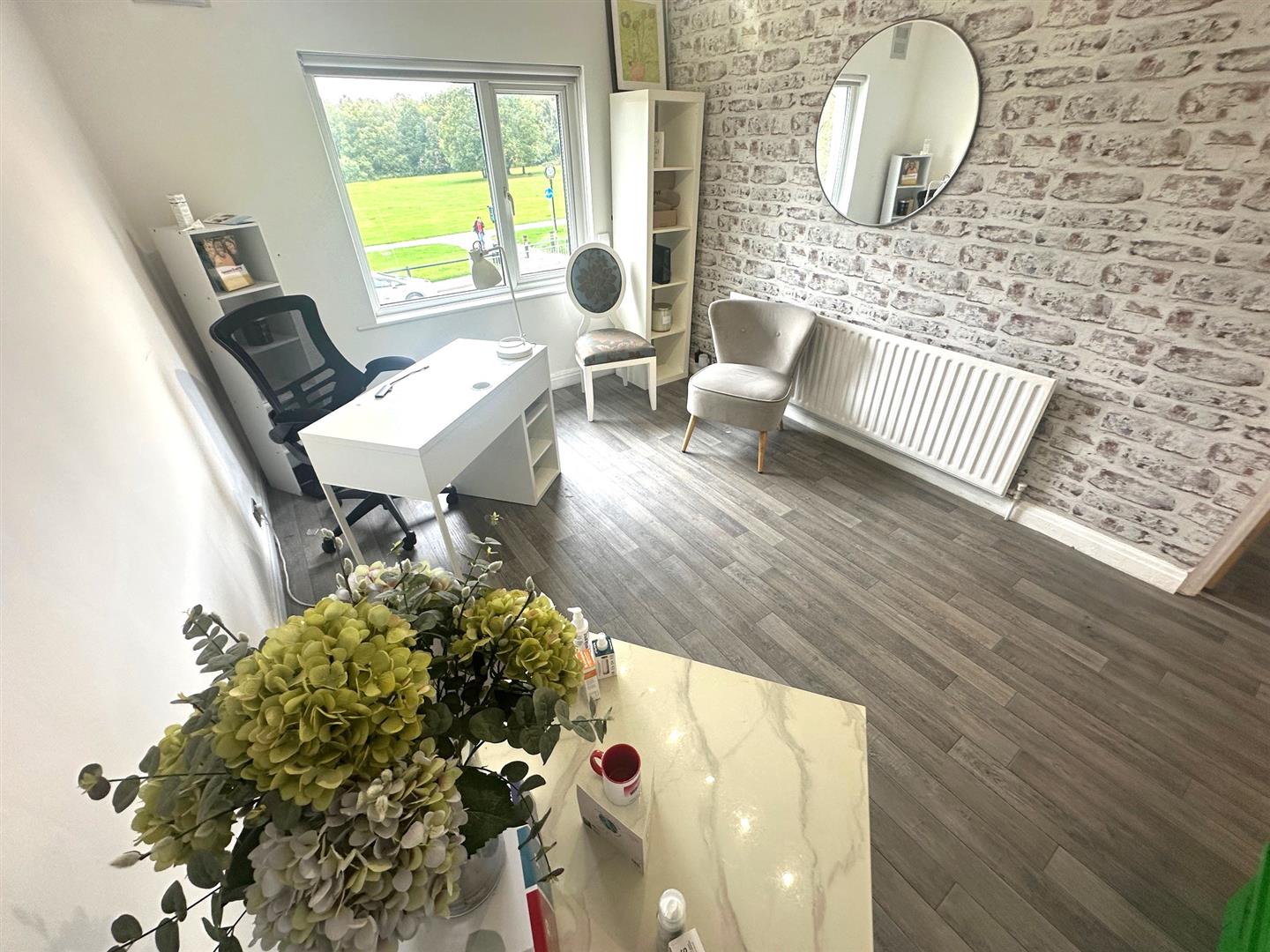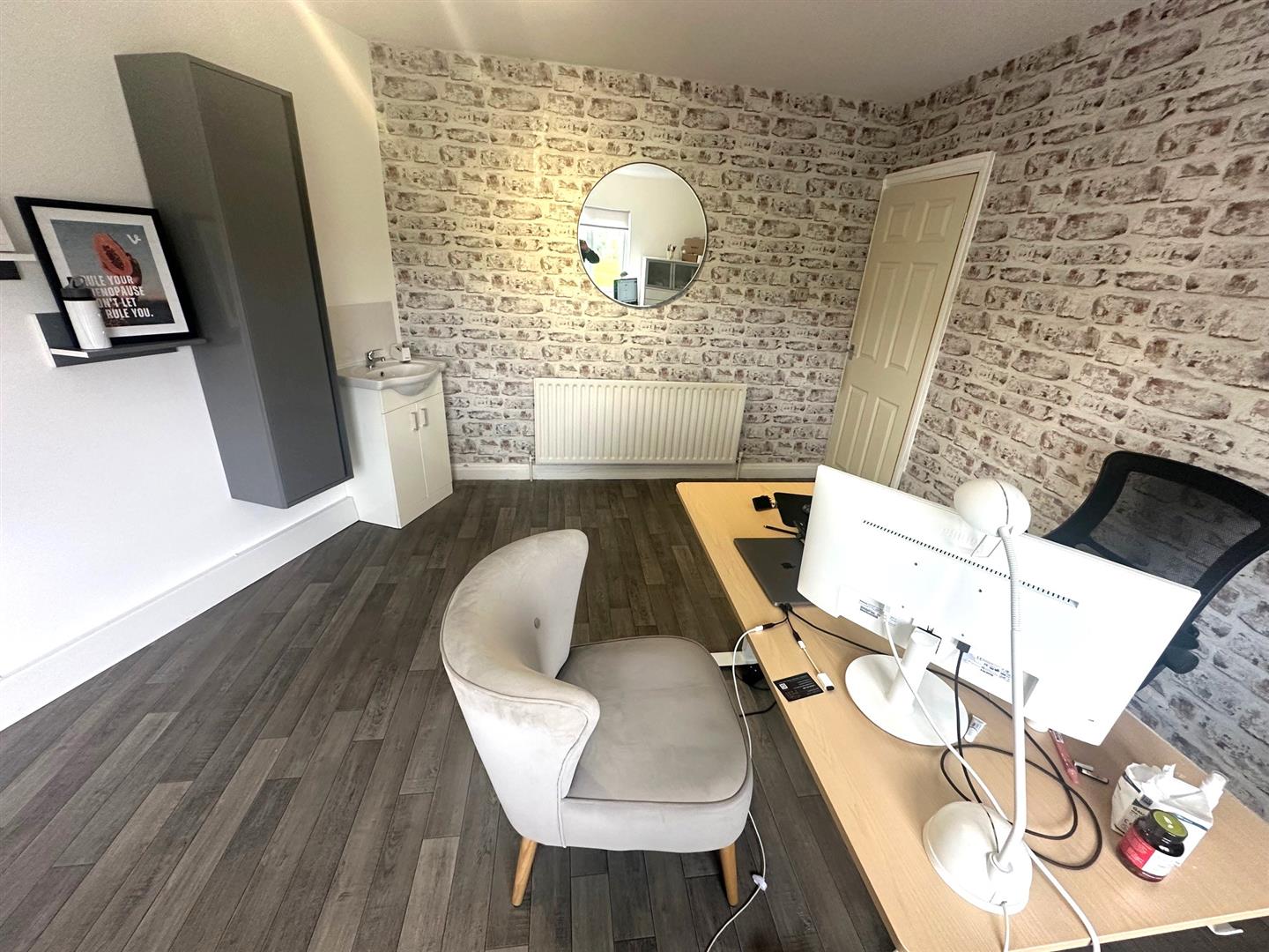 Description - Discreet rear ground floor entrance providing access to first floor suite comprising 3 offices or treatment rooms with private w/c.