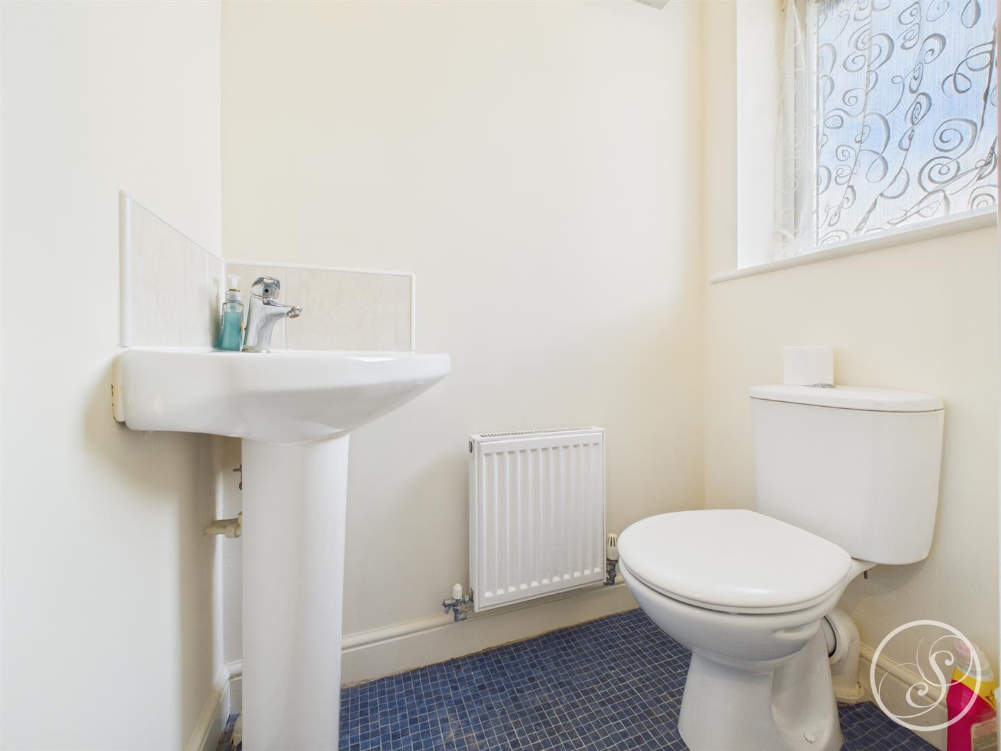 Guest W.C - Double glazed frosted window to the front elevation. Low flush w.c. Wash hand basin. Central heating radiator.
