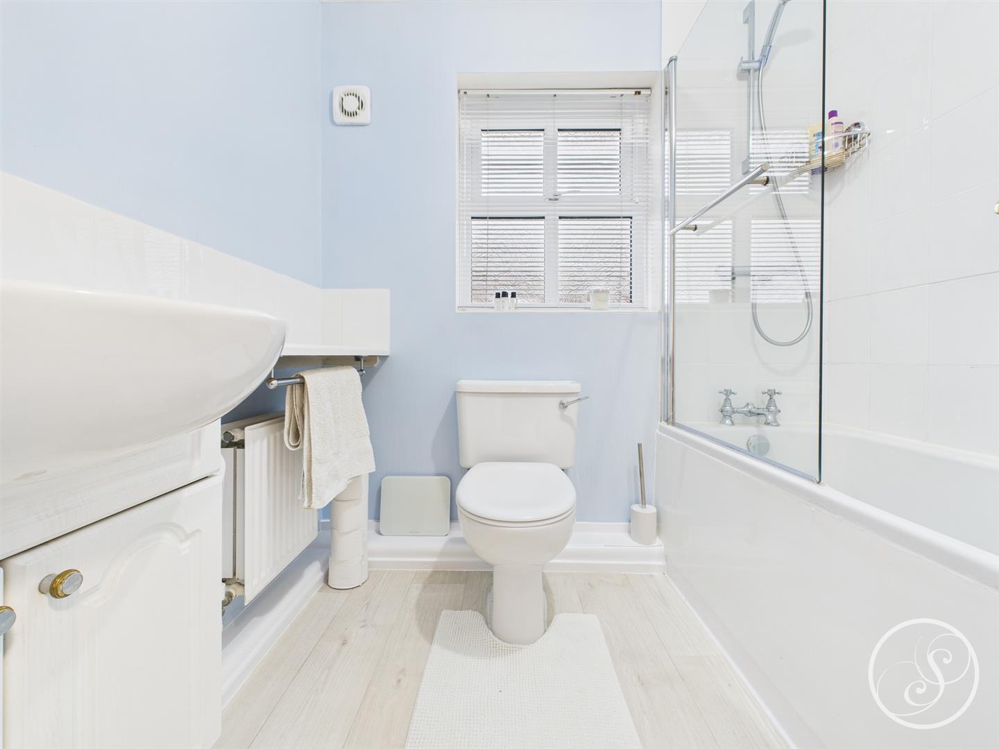 Bathroom - Double glazed frosted window to the rear elevation. Bath with shower above. Low flush w.c. Wash hand basin with storage below. Central heating radiator.