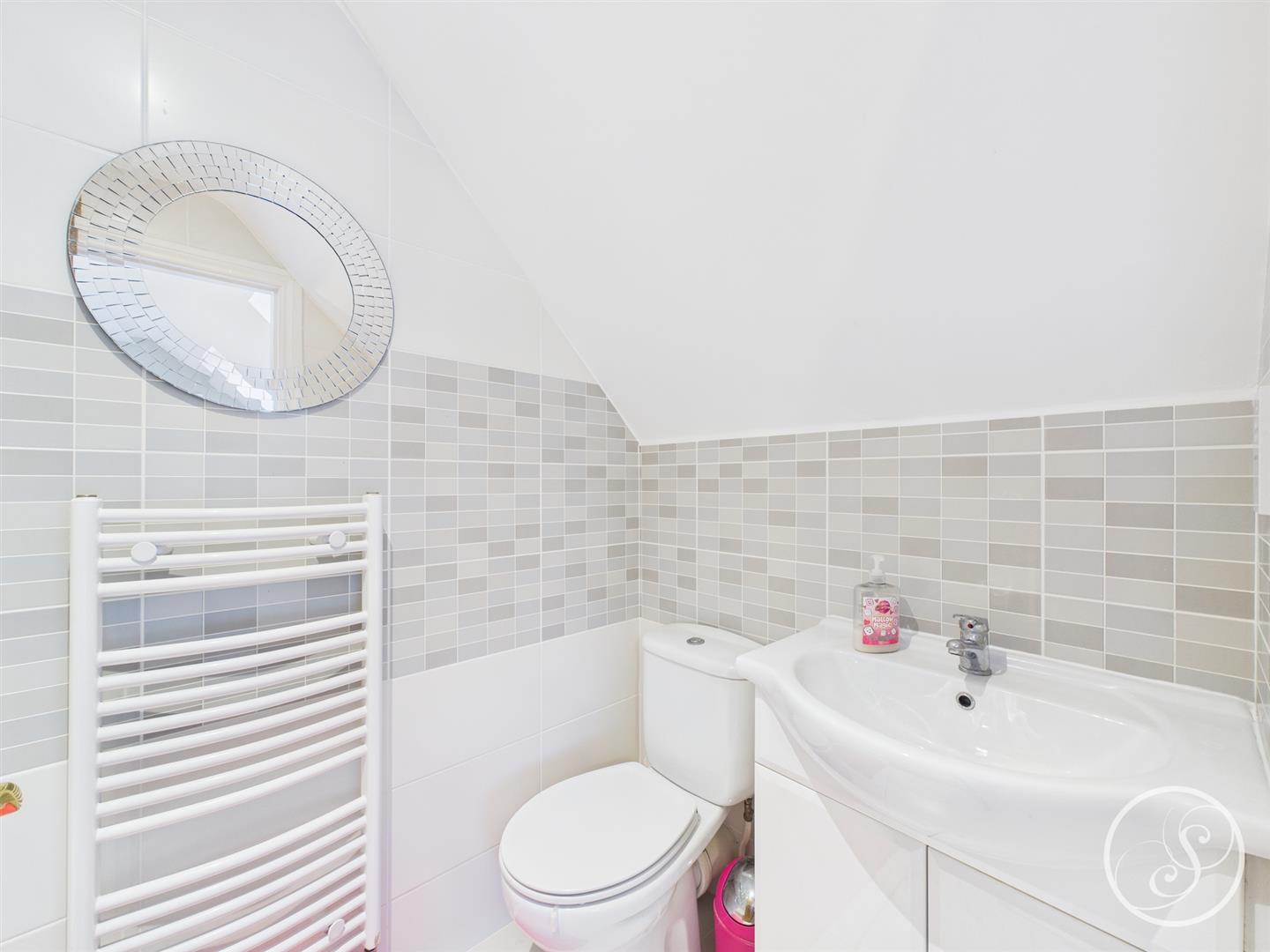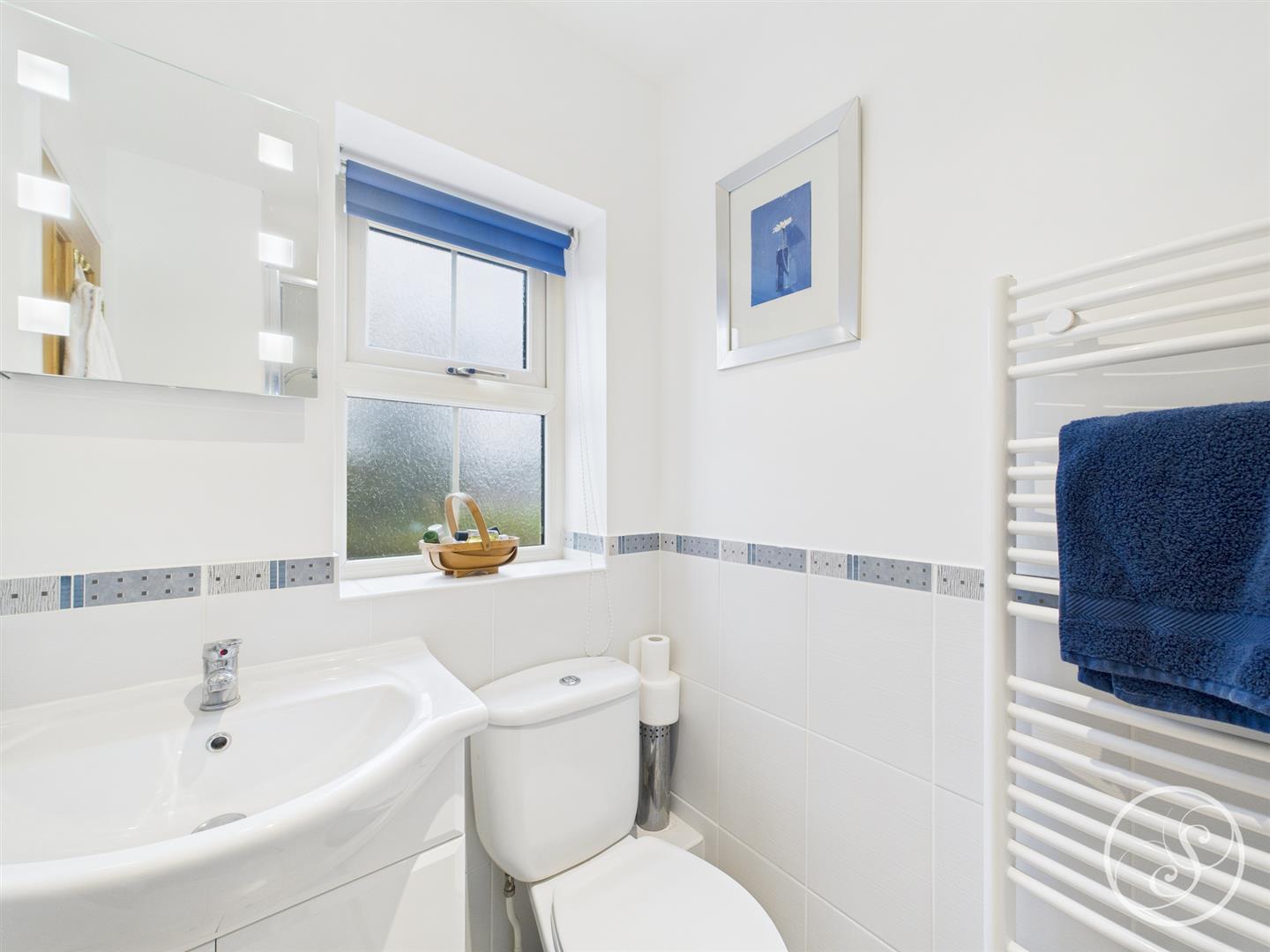 Guest Wc - Fitted with a wc and wash hand basin. In addition there is tiling and a heated towel rail.
