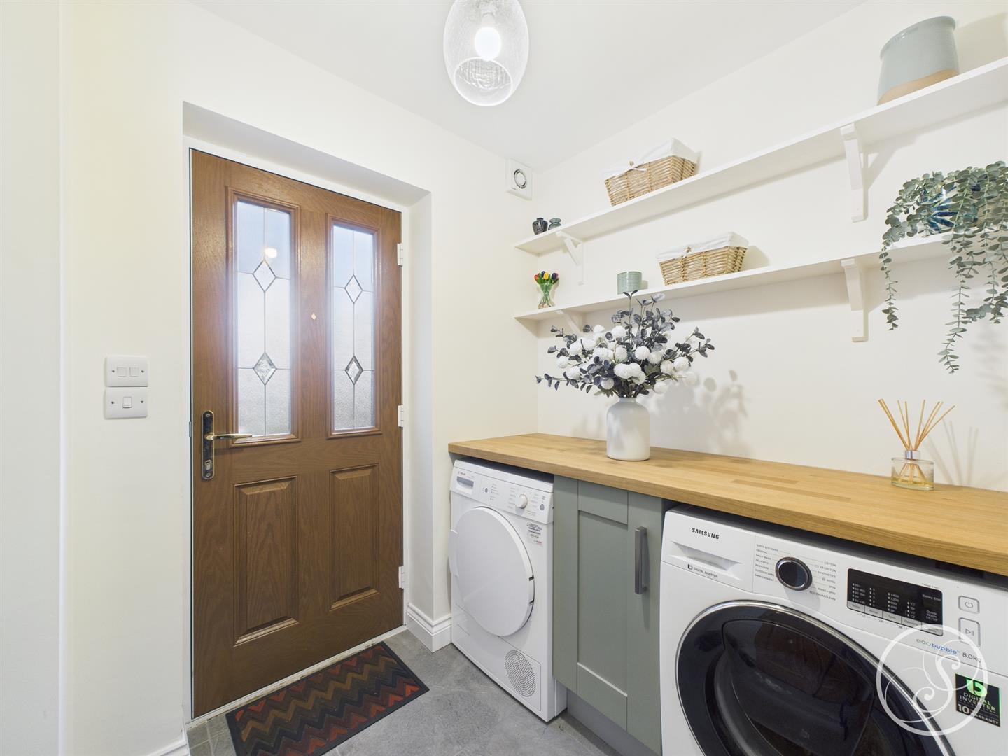 Entrance/Utility Area - Central heating radiator. Plumbing for washing machine. Space for dryer. External door to front. Door into entrance hall.