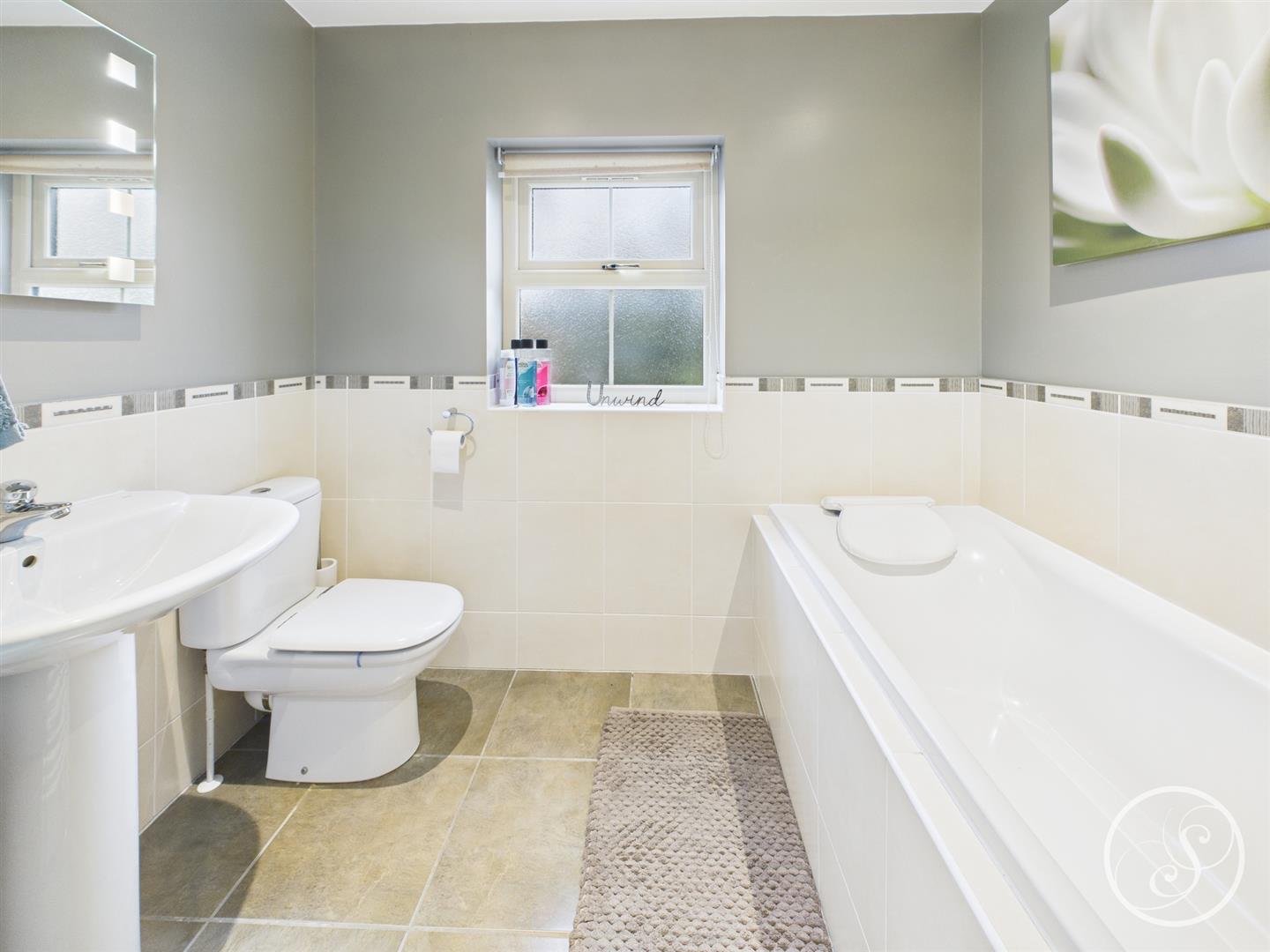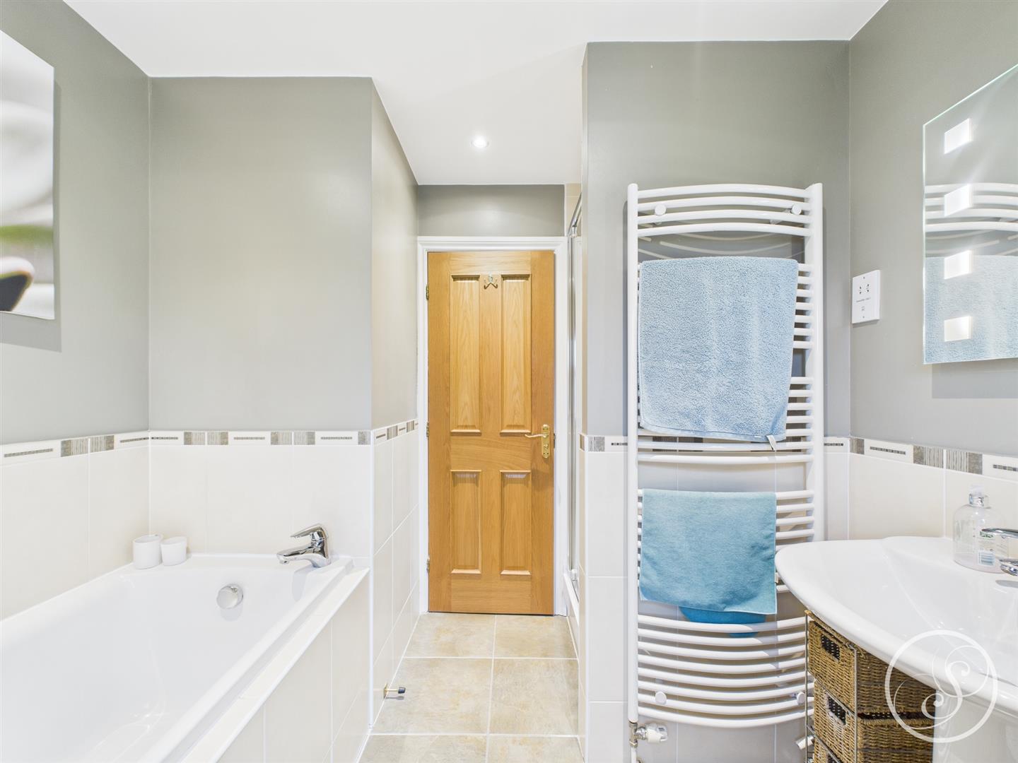 Bathroom - Fitted with a bath, separate shower, wash hand basin and wc. In addition there is part tiling, heated towel rail, double glazed window and a shaver point.