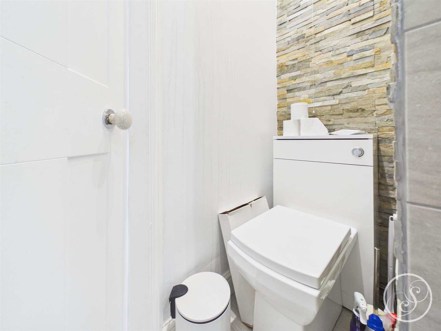 Family Bathroom - Double glazed frosted window to the rear elevation. Shower cubicle. Low flush w.c. Wash hand basin with storage below. Heated towel rail. Built in storage unit.