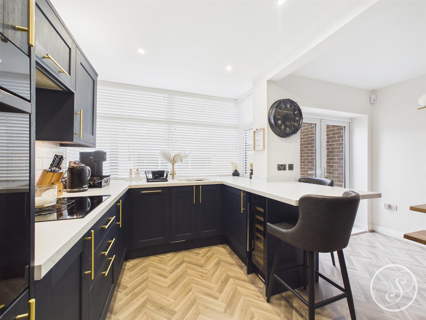 Kitchen - Range of wall and base units. Integrated oven with induction hob and extractor fan above. Space for fridge freezer. Sink and drainer. Double glazed window to the rear elevation. Pantry area with space for washing machine.