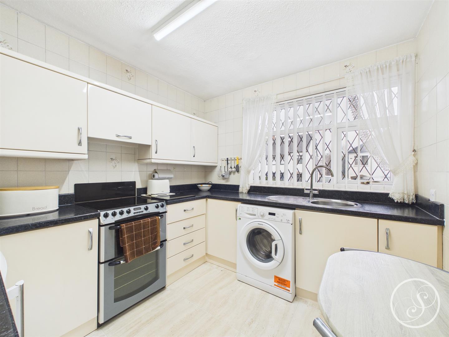 Kitchen - Range of wall and base units. Space for oven. Space for under counter fridge. Plumbing for washing machine. Sink and drainer. Double glazed window to the front elevation. Central heating radiator.
