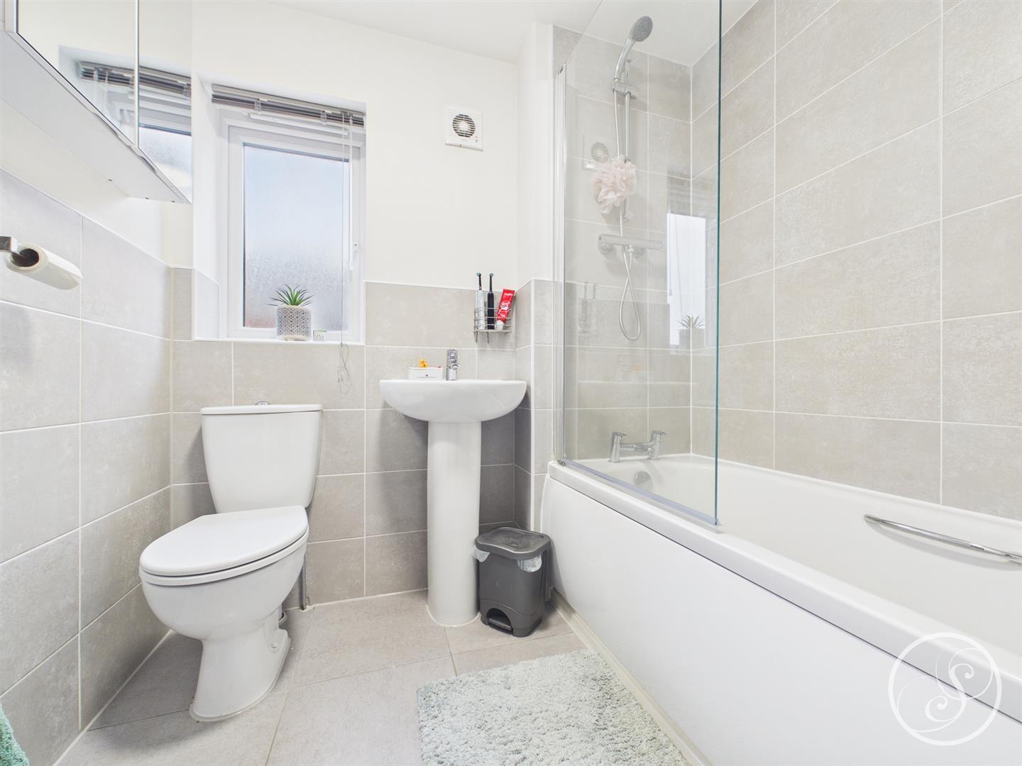 Bathroom - Double glazed frosted window to the side elevation. Low flush w.c. Wash hand basin. Bath with shower above. Heated towel rail.