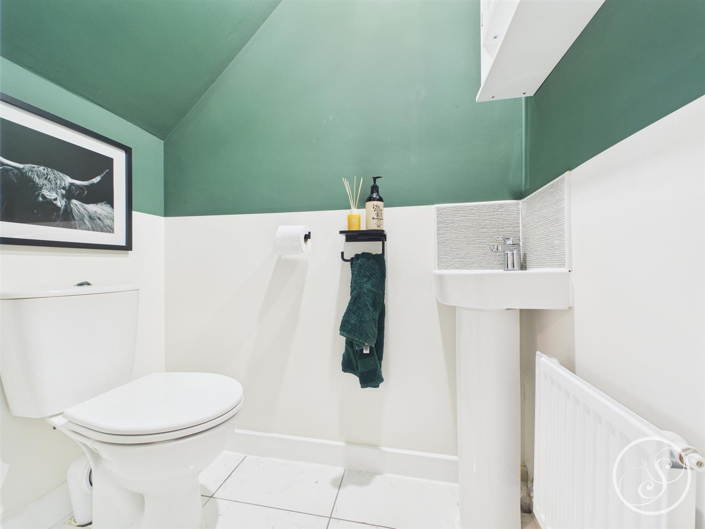 Guest W.C - Low flush w.c. Wash hand basin. Central heating radiator.
