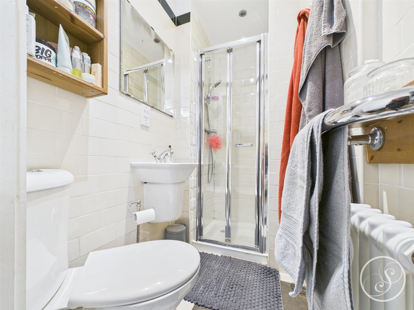 Ensuite - Shower cubicle. Low flush w.c. Wash hand basin. Central heating radiator.