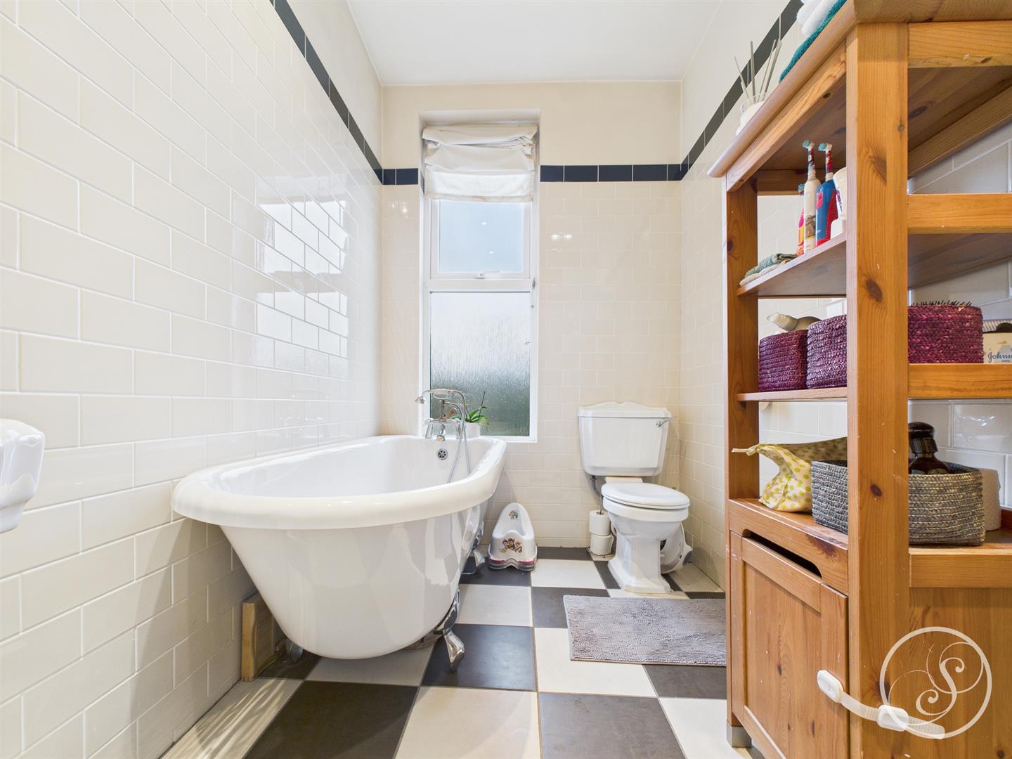 Bathroom - Double glazed frosted window to the front elevation. Low flush w.c. Wash hand basin. Free standing bath. Central heating radiator.