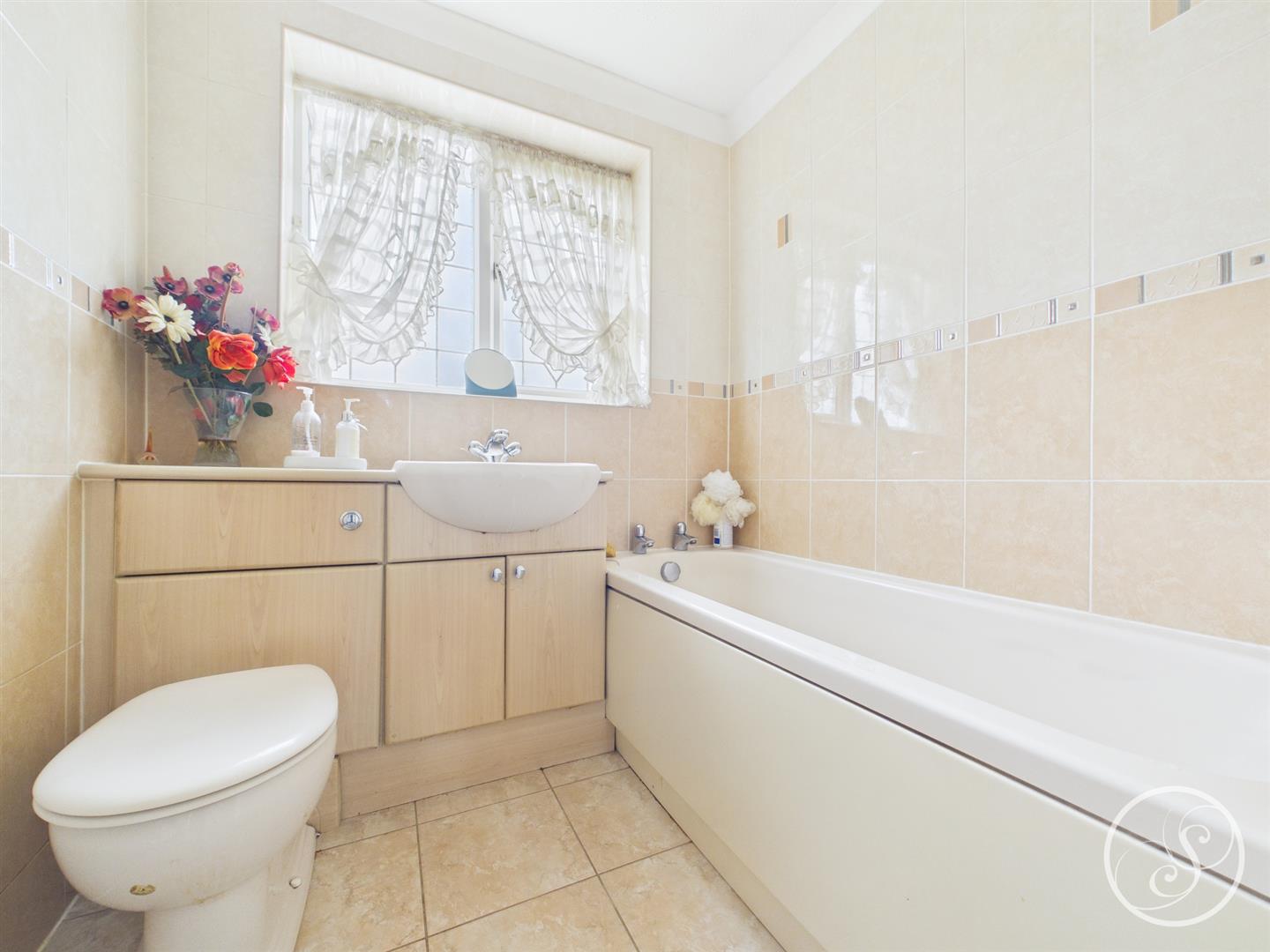 Bathroom - Fitted with a bath, vanity wash hand basin and wc. In addition there is tiling, central heating radiator and a double glazed window.