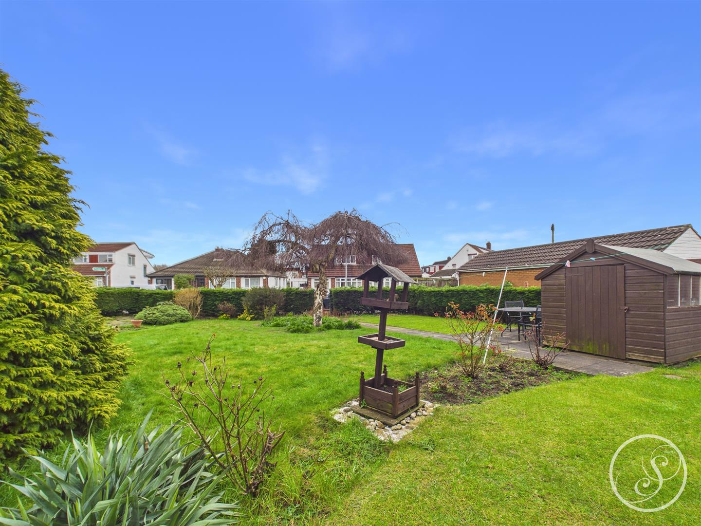 External - Situated on a large plot that offers ample space for a family. The rear garden is a great size and is mainly laid to lawn with seating areas. To the front is a spacious driveway that offers ample space for parking.