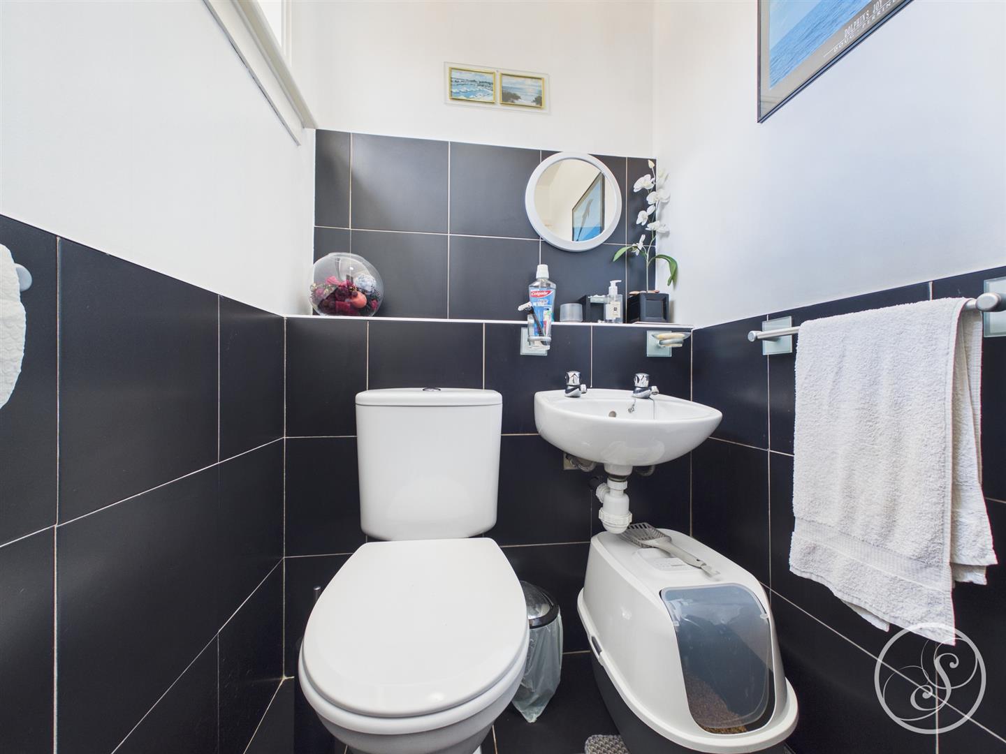 Guest W.C - Double glazed frosted window to the front elevation. Low flush w.c. Wash hand basin.