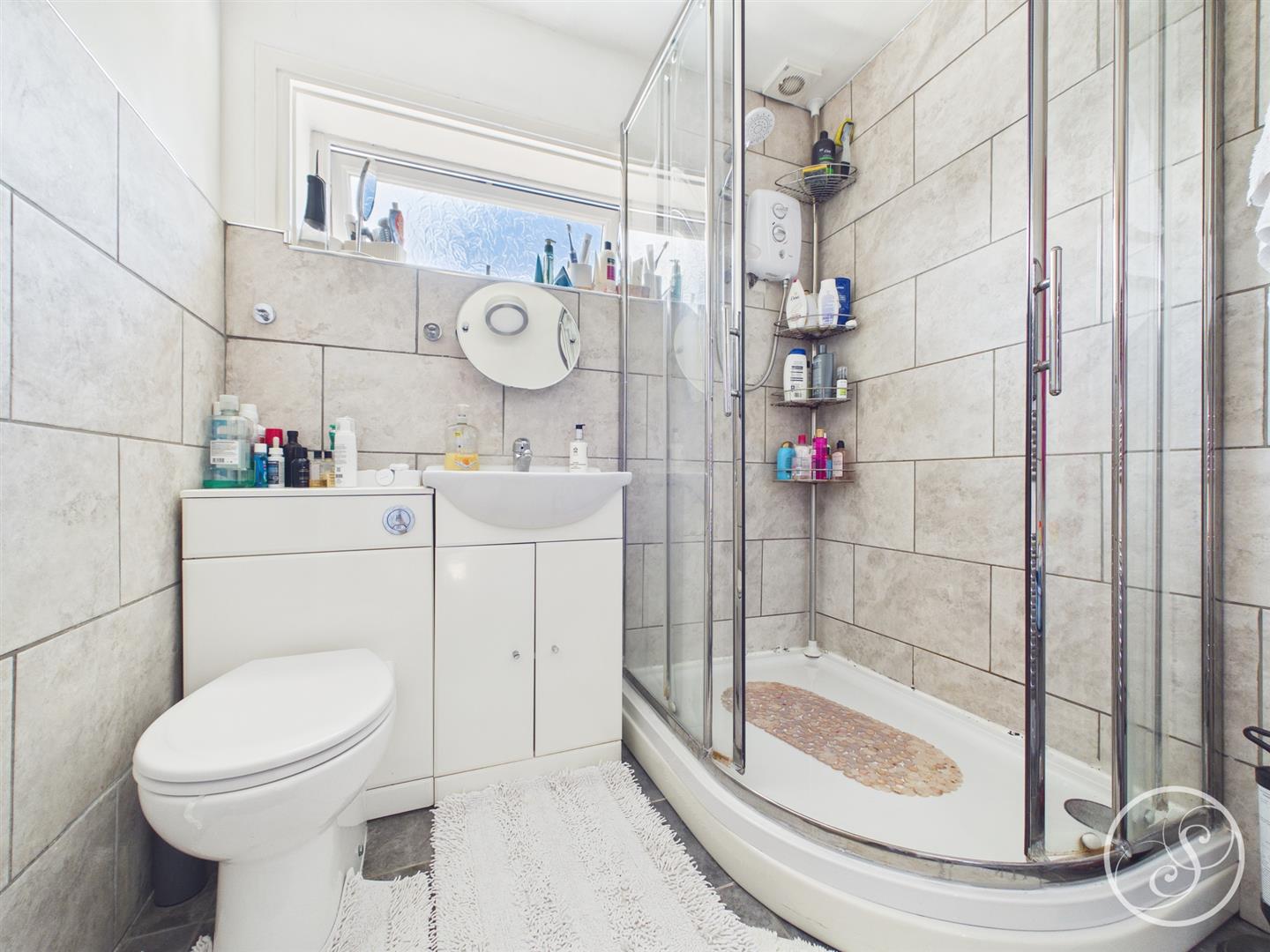 Bathroom - Double glazed frosted window to the rear elevation. Low flush w.c. Wash hand basin with storage below. Heated towel rail. Shower cubicle.