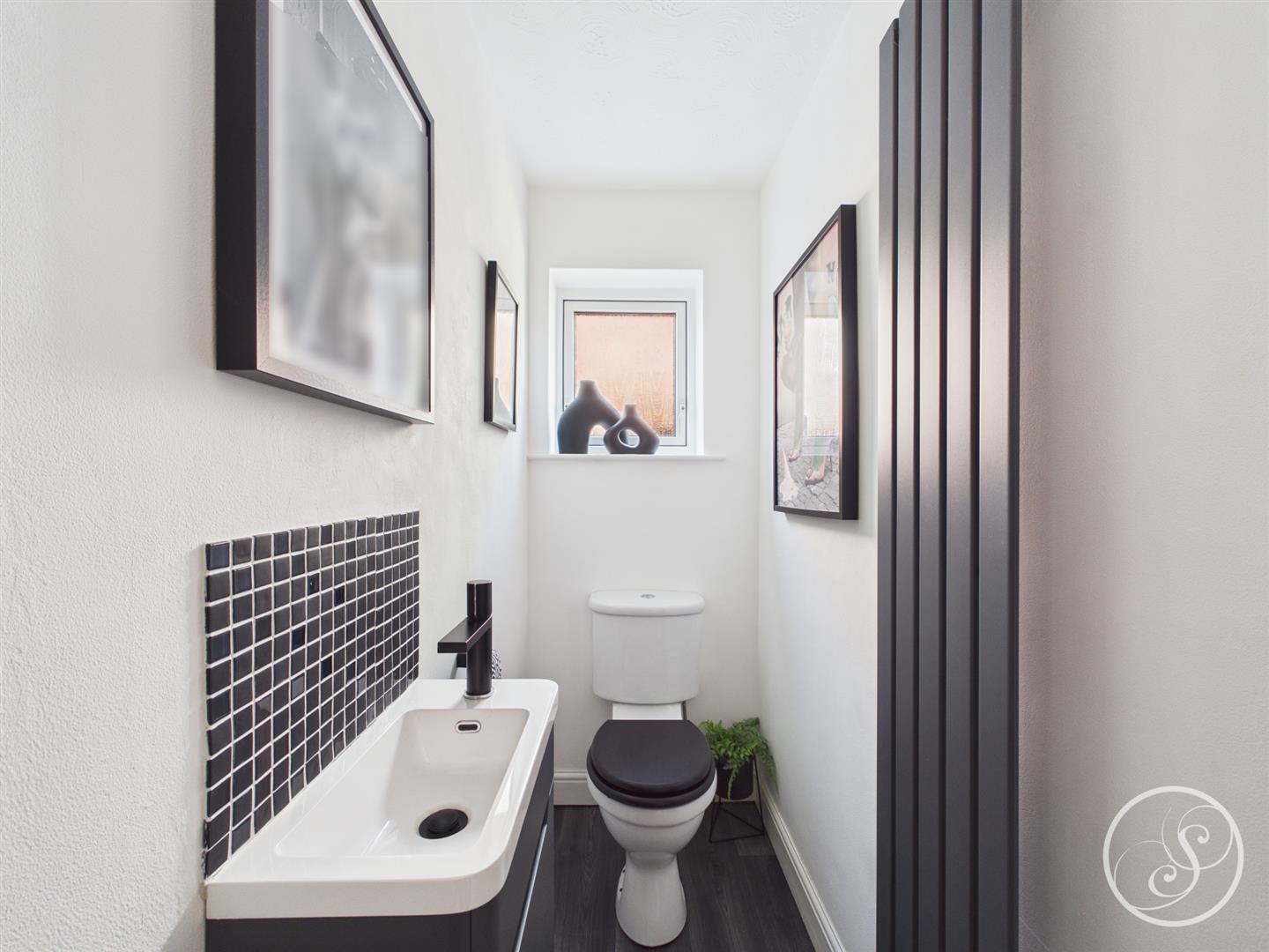 Guest Wc - Fitted with a wc and vanity wash hand basin. In addition there is a double glazed window and a modern tall central heating radiator.