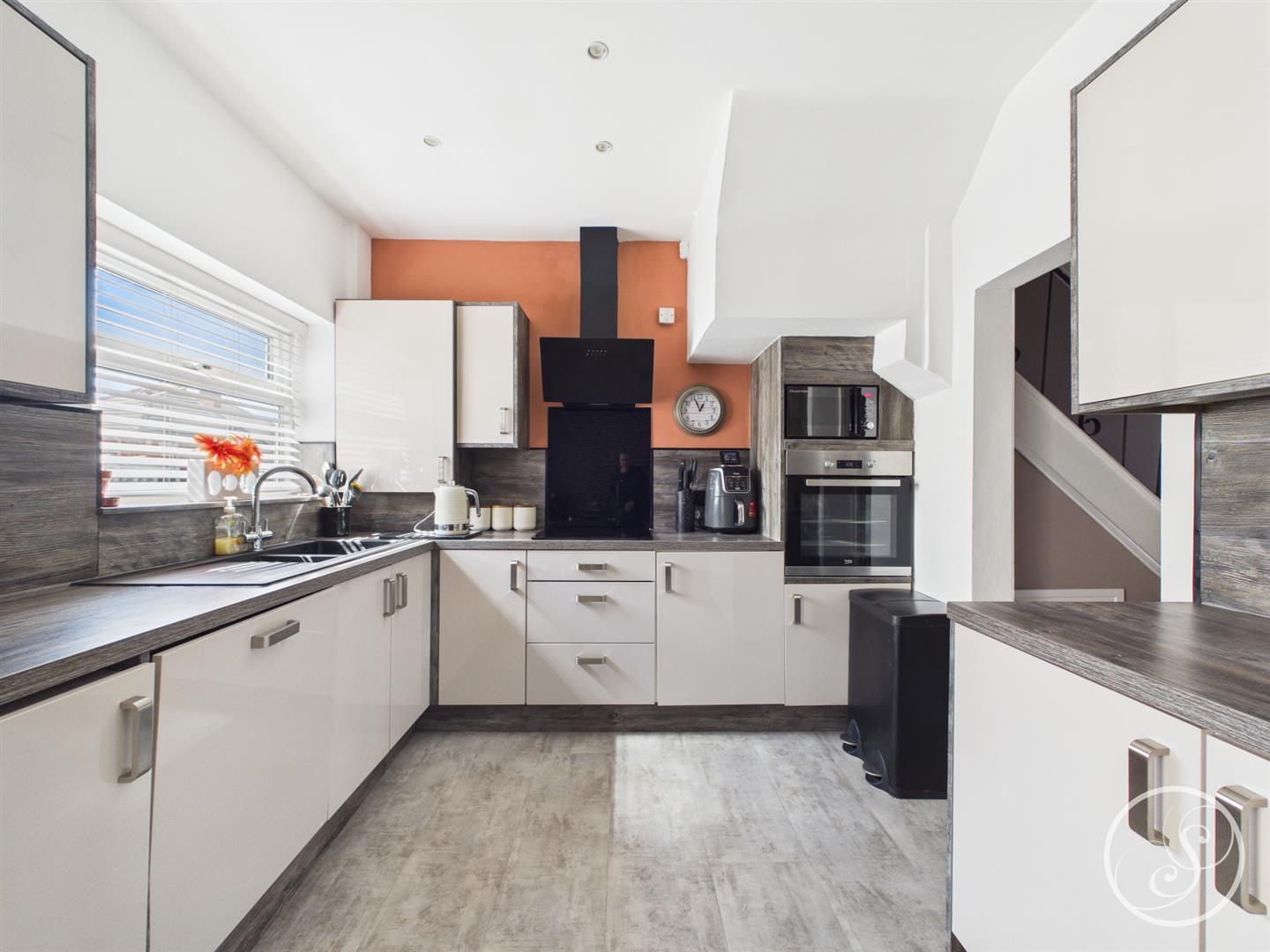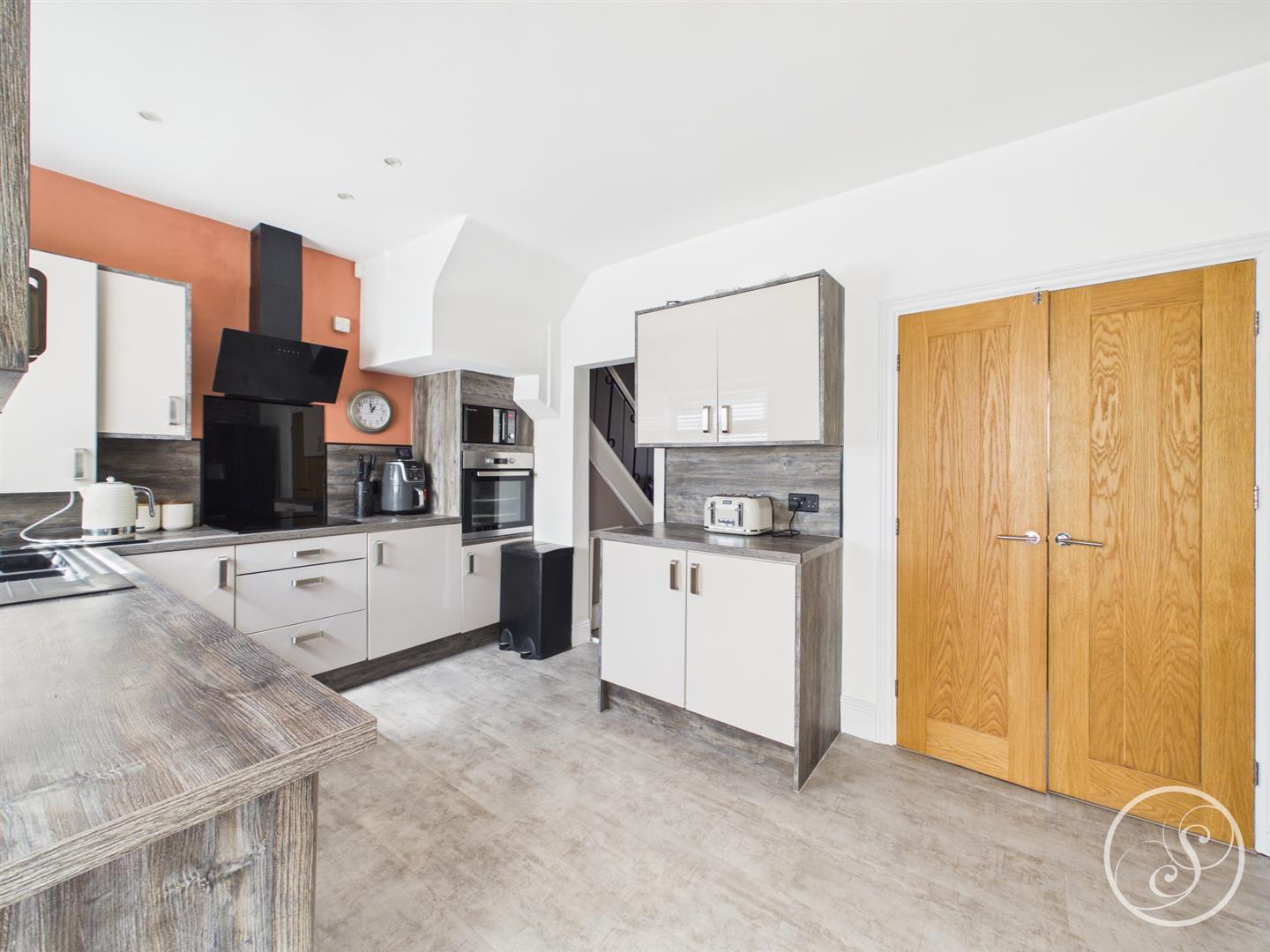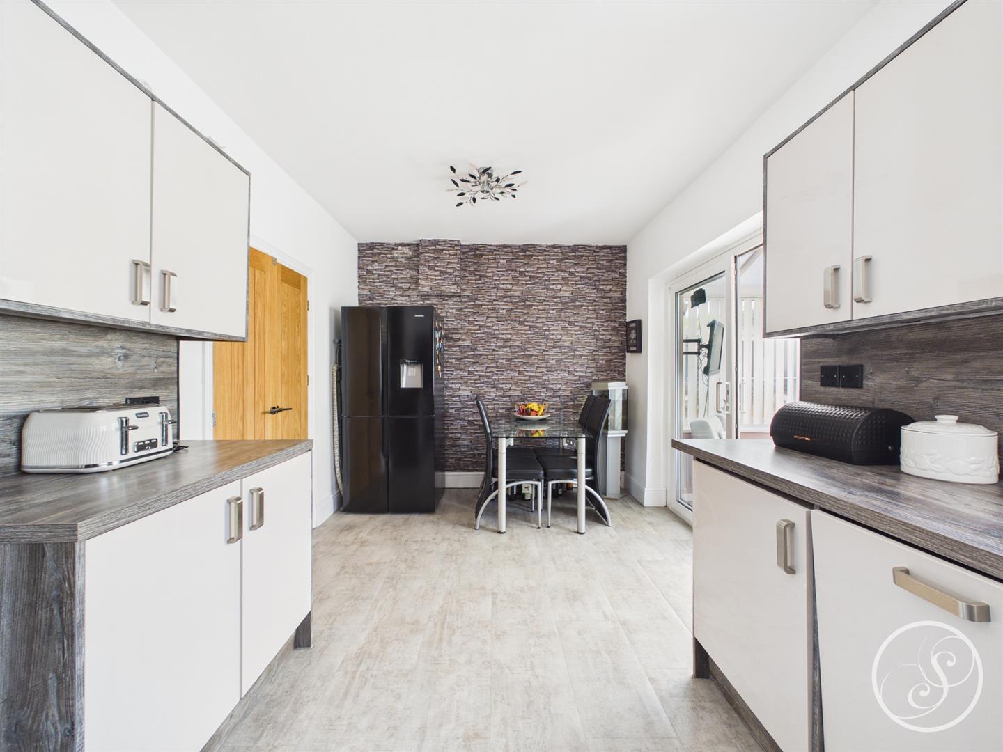 Kitchen/Diner - Modern fitted kitchen with a range of wall and base units with work surfaces over incorporating a sink and drainer unit. Integrated washing machine and dishwasher. Oven and hob with extractor fan. access into conservatory.